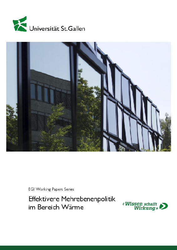 The project “The Future of St. Gallen’s Energy Concept 2050 – Room to Maneuver in Switzerland’s Multi-Level Energy Governance” addressed these challenges and examined the political interactions between the energy policies of St. Gallen on the one hand, and the cantonal and federal level on the other hand.